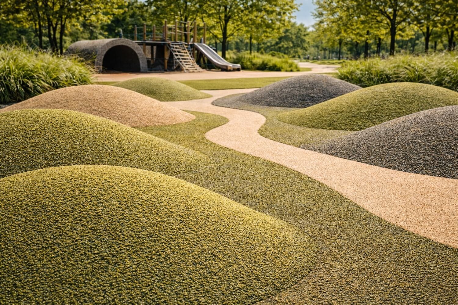 «КЖ Групп» имеет собственное производство по окрашиванию резиновой крошки. Мы выпускаем продукцию по уникальным рецептурам. В палитре — 29 оттенков для создания яркого и необычного дизайна игровых и спортивных площадок.