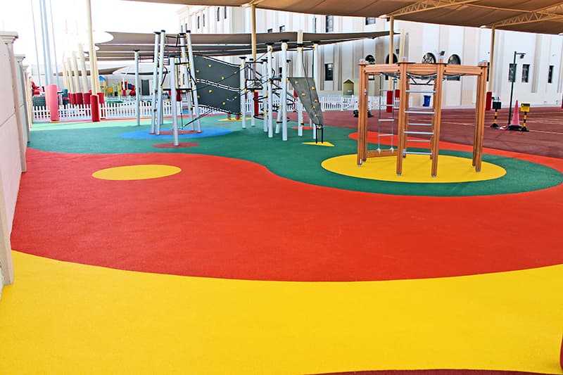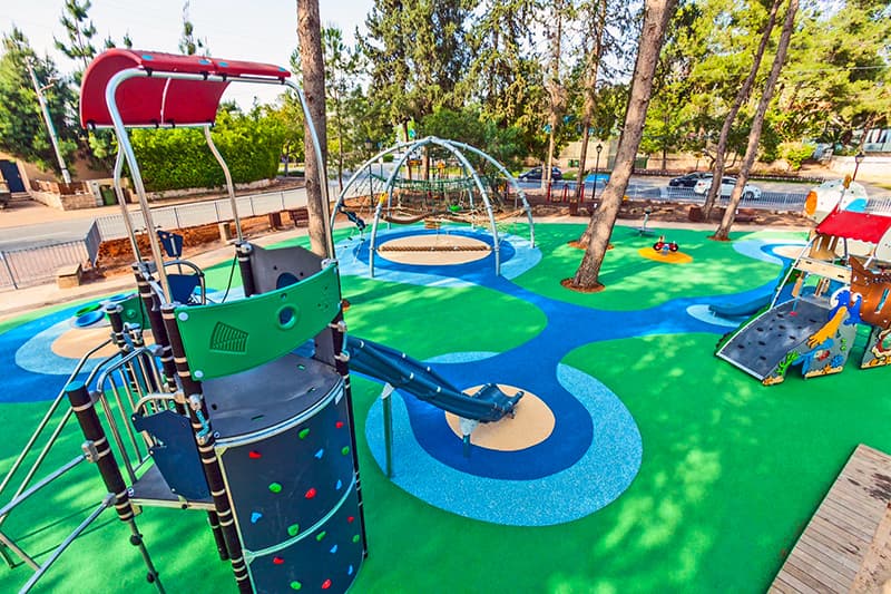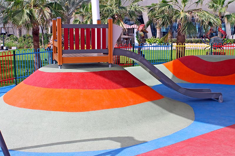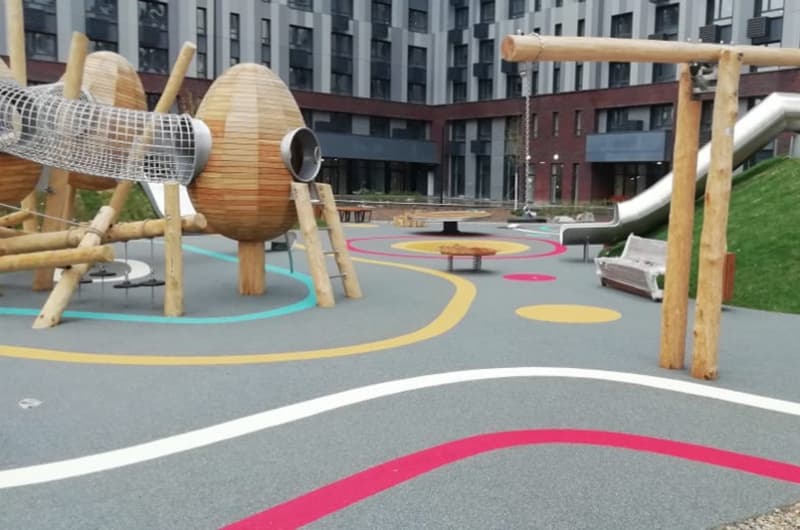 Обширный выбор оттенков позволяет создавать яркие и оригинальные покрытия для детских площадок в любой стилистике.