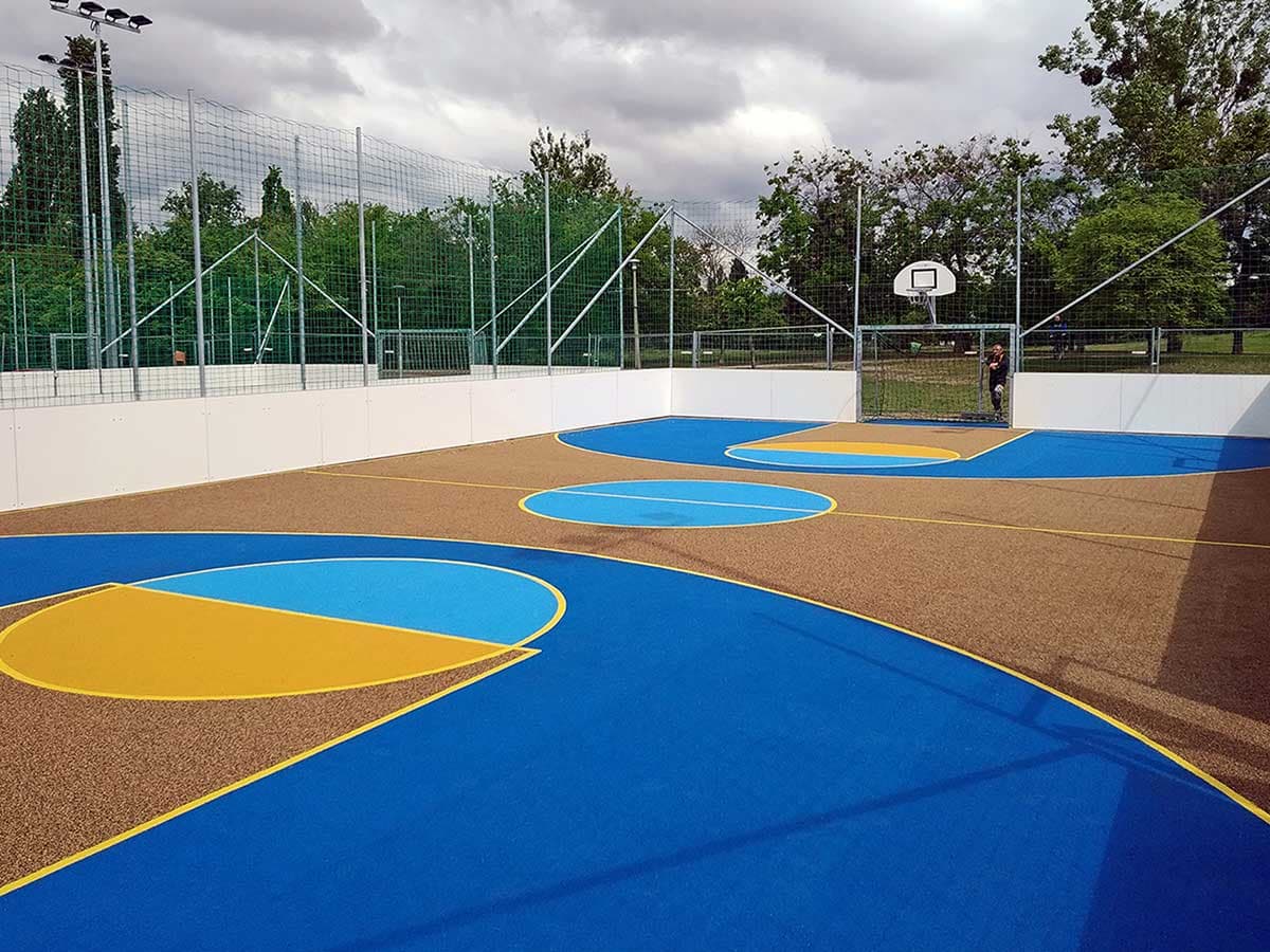 Площадки для занятий баскетболом могут быть обустроены как в закрытых помещениях, так и на открытом воздухе. Резиновое покрытие является одним из наиболее эффективных и травмобезопасных решений для данного типа спортивных объектов.