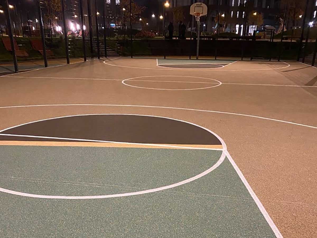 Для обустройства баскетбольных площадок можно использовать бесшовное покрытие на основе резиновой крошки. Такое покрытие может быть: